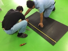 ゴムシートから切り出されるRIKENのゴムマット。